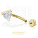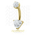 14g, Titanio Navel Curved, Rosca Interna, 1.2mm Patrón de Rosca, Ombligo Three Facet Gem, Platizado Dorado Prong Set 3, Cubic Zirconia.